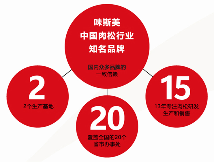 味斯美作为肉松行业第一品牌,以品质服务品牌,以品牌创造价值,秉承“成为世界级优质肉制品供应商”的企业愿景,大音希声,正道行远,开启“百亿”新征程,构筑“百年”企业,谱写融合发展、协同发展、共赢发展的新篇章。